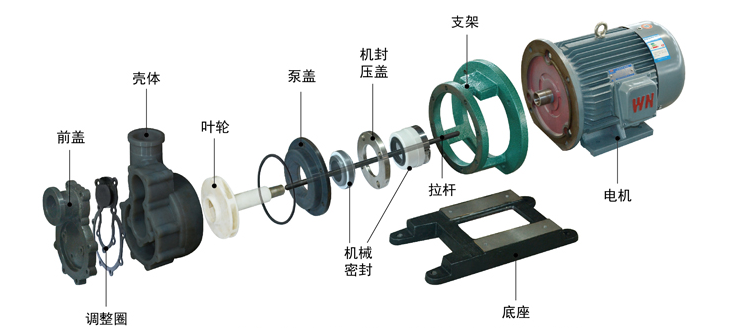 2.泵体、叶轮和泵盖采用CFD计算机流体力学设计水力部件进行模块设计和模压烧结而成。具有流道宽、效率高、径向力小、尺寸准确、流道光洁和互换性好等特点;