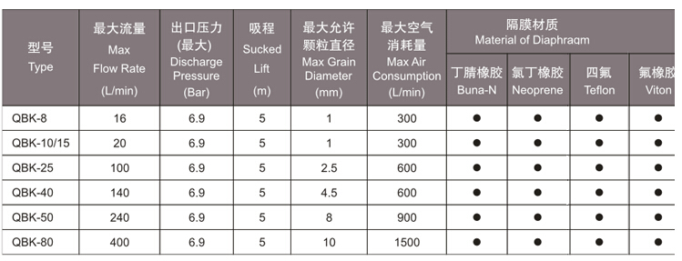 核心提示:气动隔膜泵是我公司开发的第三代气动隔膜泵,具有使用寿命长,不会停顿等优点,它既能抽送流动的液体,又能输送一些不易流动的介质,具有自吸泵、潜水泵、屏蔽泵、泥浆泵和杂质泵等输送机械的许多优点。